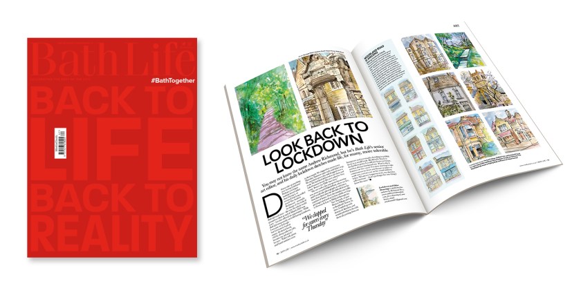 After being closed for over four months due to covid, this week MediaClash brought out their first returning issue of Bath Life and within its pages is a wonderful spread featuring some of my sketches from lockdown. It also included a handful of building portraits I created of the Moorland Road businesses.